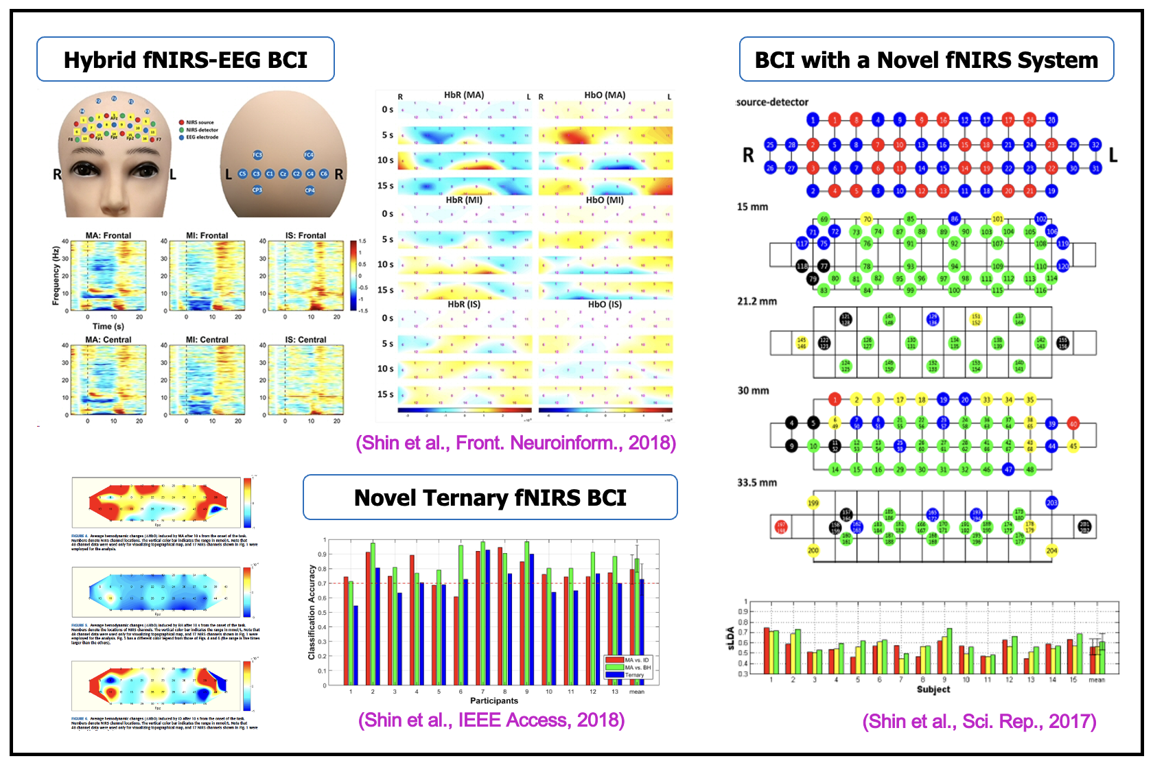 <2017년부터 현재까지 발표한 fNIR기반 BCI 논문의 대표 결과 모음 - 그림 클릭하면 확대>